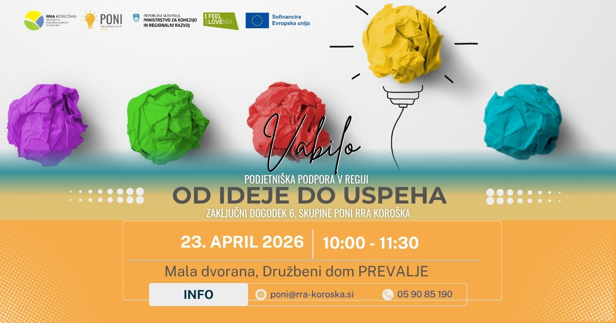 Za vsako podjetniško idejo stoji več kot le navdih. Stojijo vprašanja, dvomi, iskanje smeri, majhni premiki in predvsem vztrajnost, da kljub negotovosti ne odnehamo. Na zaključnem dogodku 6. skupine PONI RRA Koroška bomo odprli prav to temo – kako nastaja podjetniška pot, ko še ni vseh odgovorov, a obstajata volja in pogum za naslednji korak. Dogodek bo povezal sveže podjetniške zgodbe, energijo nove generacije udeležencev in razmislek o tem, zakaj je vztrajnost pogosto tista, ki idejo pripelje najdlje.