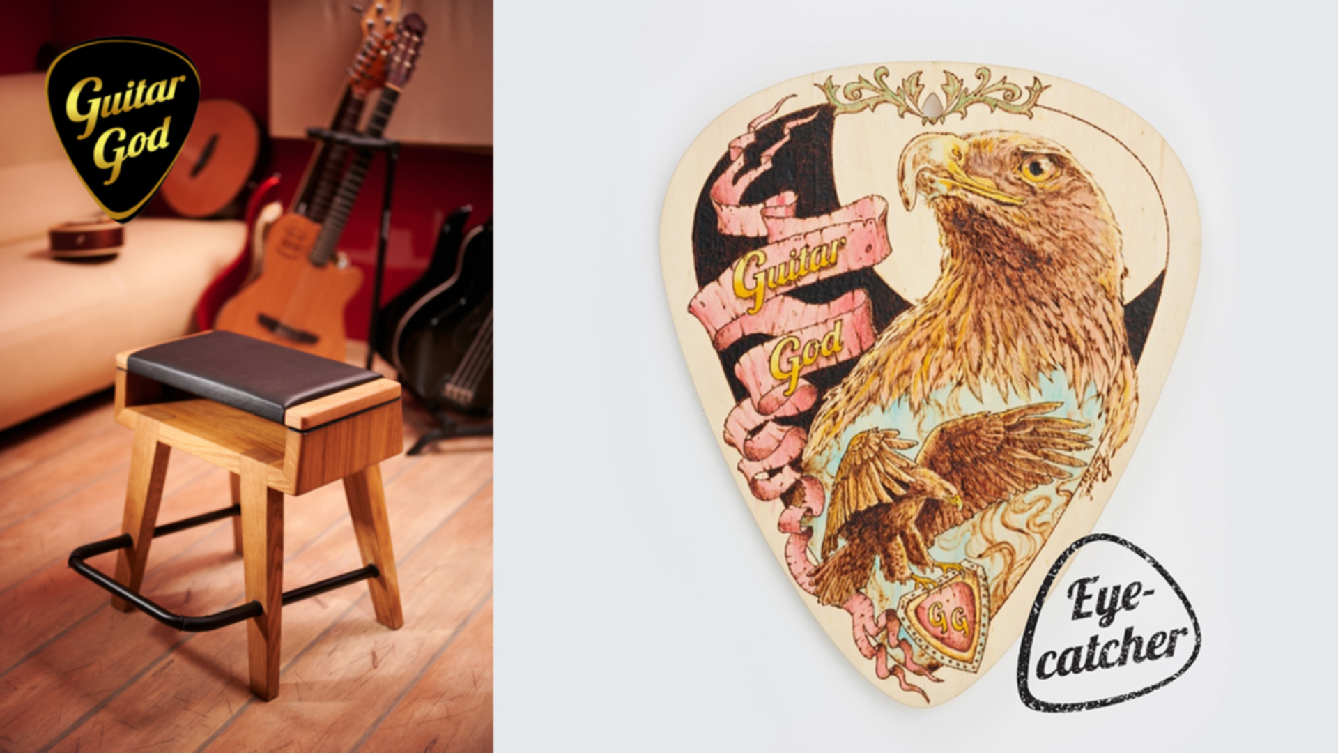 Guitar God je sinonim za kvalitetne, personalizirane stole za kitariste in nosilce za kitare, ročno narejene iz najkakovostnejših materialov (slovenski masivni hrastov les), ki jih odlikuje ergonomični in funkcionalno dovršen vrhunski dizajn.