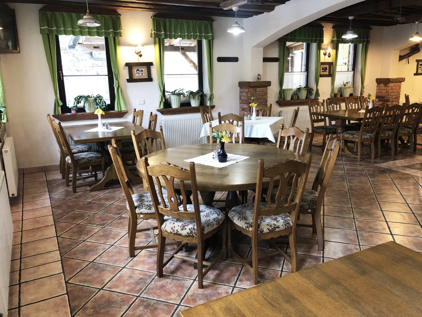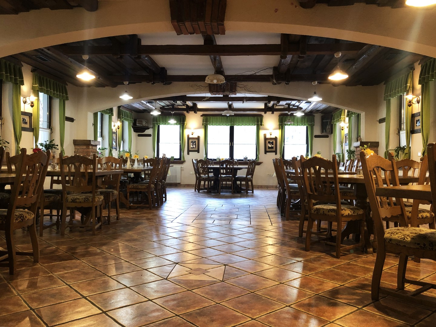 Stavba v skupni izmeri 805 m2 vključuje opremljeno kuhinjo s kakovostnimi kuhinjskimi aparati, večjo dvorano, ki lahko služi za razna slavja oz. organizacijo družabnih in izobraževalnih dogodkov. Nad gostinskim predelom se nahajajo tudi bivalni prostori, ki se jih trenutno oddaja v dolgoročni najem za bivanje in obsegajo 2 stanovanja ter skupno kar 8 sob, ki si v dveh zaokroženih stanovanjih delijo kuhinjo in kopalnico.